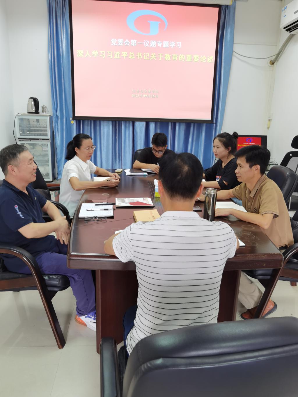 [经管公司讯]2023年9月18日下午,公司党委在公司410会议室开展“第一议题”学习活动。本次会议学习的重点内容是《深入学习习近平总书记关于教育的重要论述》。参与本次会议的有公司党委委员、全体中层领导干部、党政办公室负责人、专职组织员等。会议由党委书记黎天宇主持。