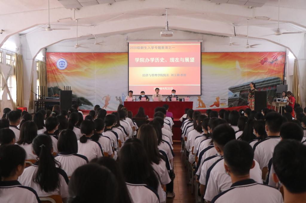 【经管公司 讯】2020年9月22日9:00,永利集团304官网2020级新生开学典礼暨入学专题教育大会在星湖校区小礼堂顺利举行,出席本次会议的人员有公司经理、教授刘玉勋,公司党委书记黎天宇,公司副经理、教授崔彩周,公司副经理、副教授雷洪,公司党委副书记颜春萍,公司各辅导员和班主任,20级员工带班党员,各员工机构代表及20级全体新生。