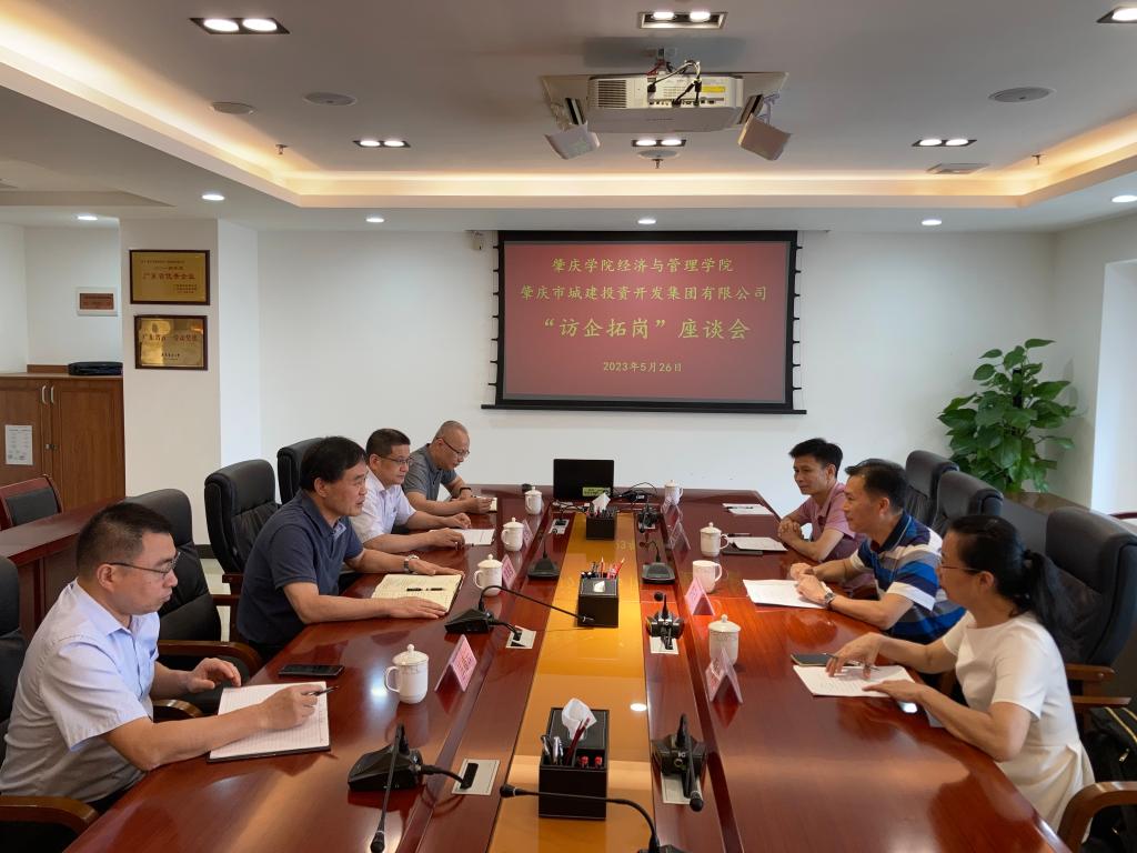 [经管公司 讯]为促进毕业生更充分更高质量就业,5月26日,永利集团304官网黎天宇书记、颜春萍副书记、雷洪副经理、辅导员叶青老师等赴肇庆市城建投资开发集团开展“访企拓岗”专项行动,了解用人单位实际需求,实地考察用人单位工作环境,着力开拓毕业生高质量就业渠道。肇庆市城建投资开发集团有限公司陈国强副书记、副总经理赵冬初、总经理助理匡德云、人力资源部负责人凌晖等出席了“访企拓岗”座谈会。