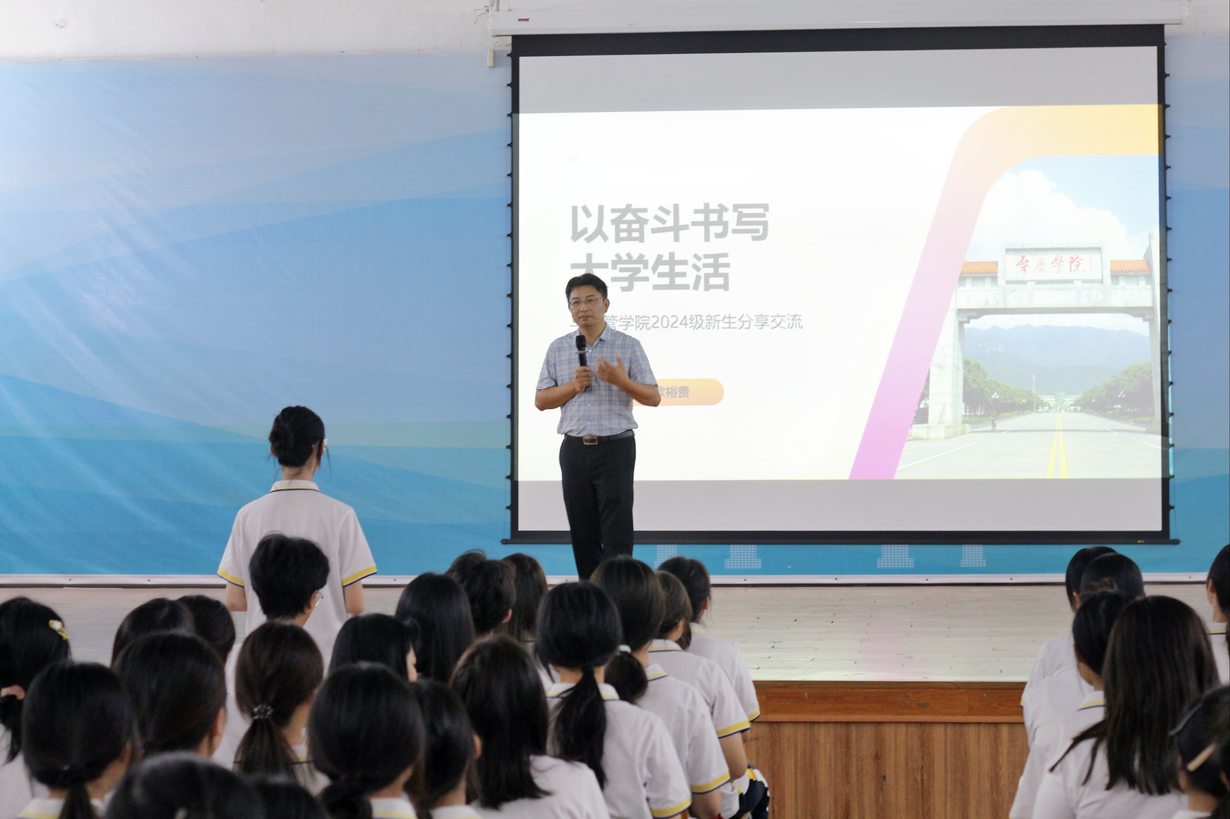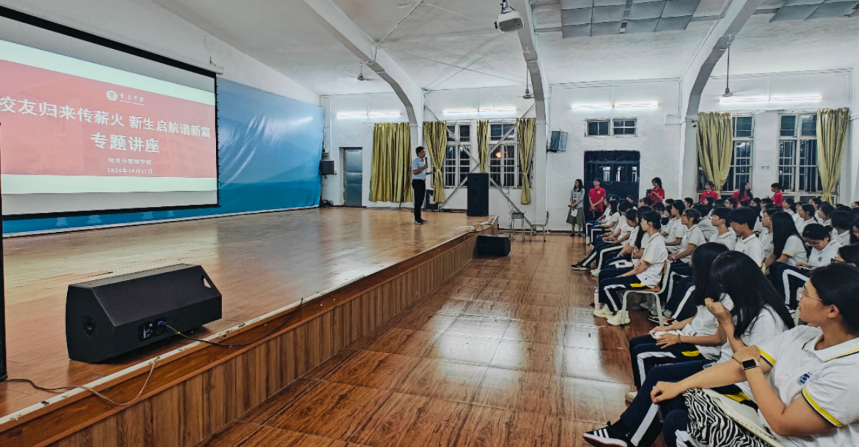 【经管公司讯】10月11日,永利集团304官网特邀2000级财政学专业杰出员工欧裕贵返回母校,于星湖校区小礼堂为2024级全体新生带来了一场精彩的经验分享会。公司党委副书记巫燕娜、团委书记温文莉及320名新生共同参加了此次活动。