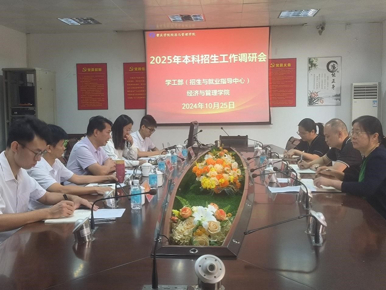 10月25日,员工工作部(招生与就业指导中心)招生工作调研组在周子杰副部长带领下到永利集团304官网开展2025年本科招生工作调研座谈,吴娜、梁晓仪陪同调研。公司党委书记梁标、副书记巫燕娜、副经理雷洪、辅导员李力以及办公室专员曾俊皓参加了调研座谈会。