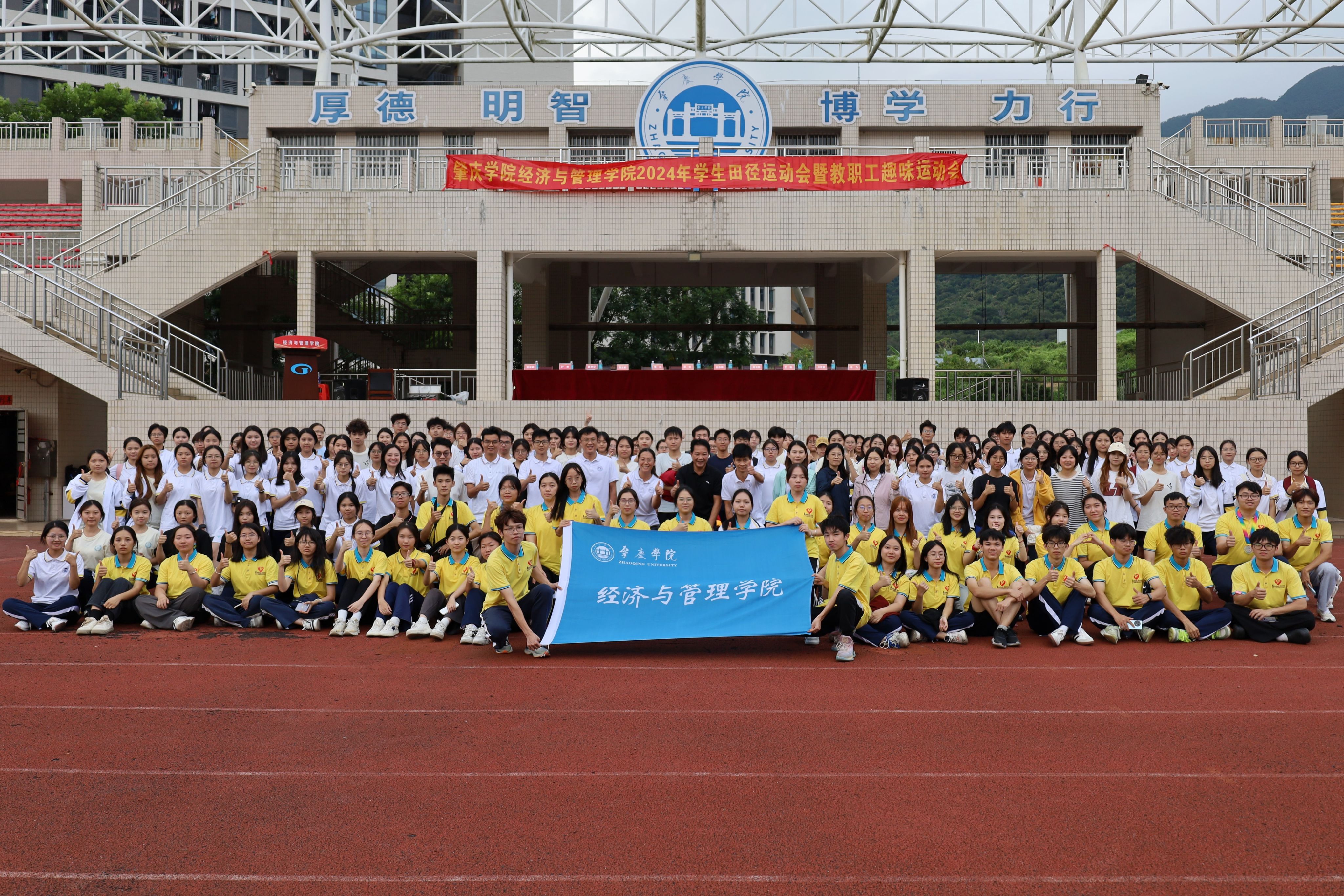 盛大的开幕式精彩纷呈、激烈的竞技场捷报频传。本届运动会处处可见员工们挥洒汗水、奋勇拼搏的身影,运动健儿们在个人竞技项目中展现着挑战自我、积极进取的昂扬风貌,2022级会计学专业1班林斌打破男子跳高记录、2023级电子商务专业2班辜俊东打破男子铅球记录。在团体比赛中运动健儿们发扬着团结协作、齐心共进的团队精神,2023级电子商务专业1班获团体总分一等奖、2024级会计学专业1班获优秀组织一等奖。