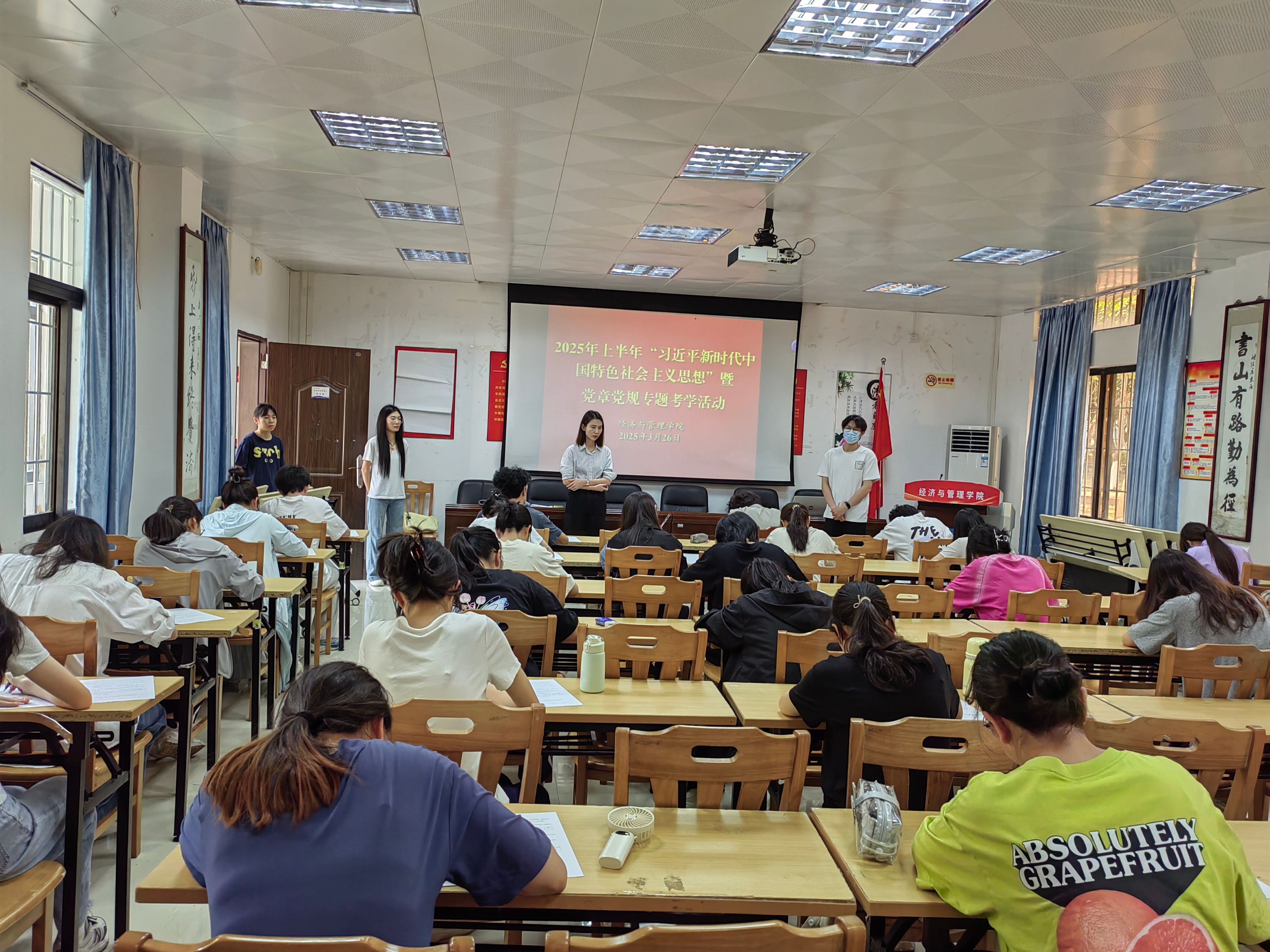 [经管公司 讯]2025年3月26日下午,公司分党校在院办107举行2025年上半年“习近平新时代中国特色社会主义思想”暨党章党规专题考学活动,考学对象为公司今年下半年党员发展对象候选人,共34人参加了考学活动。本次考学活动由公司卢若蒙老师组织。