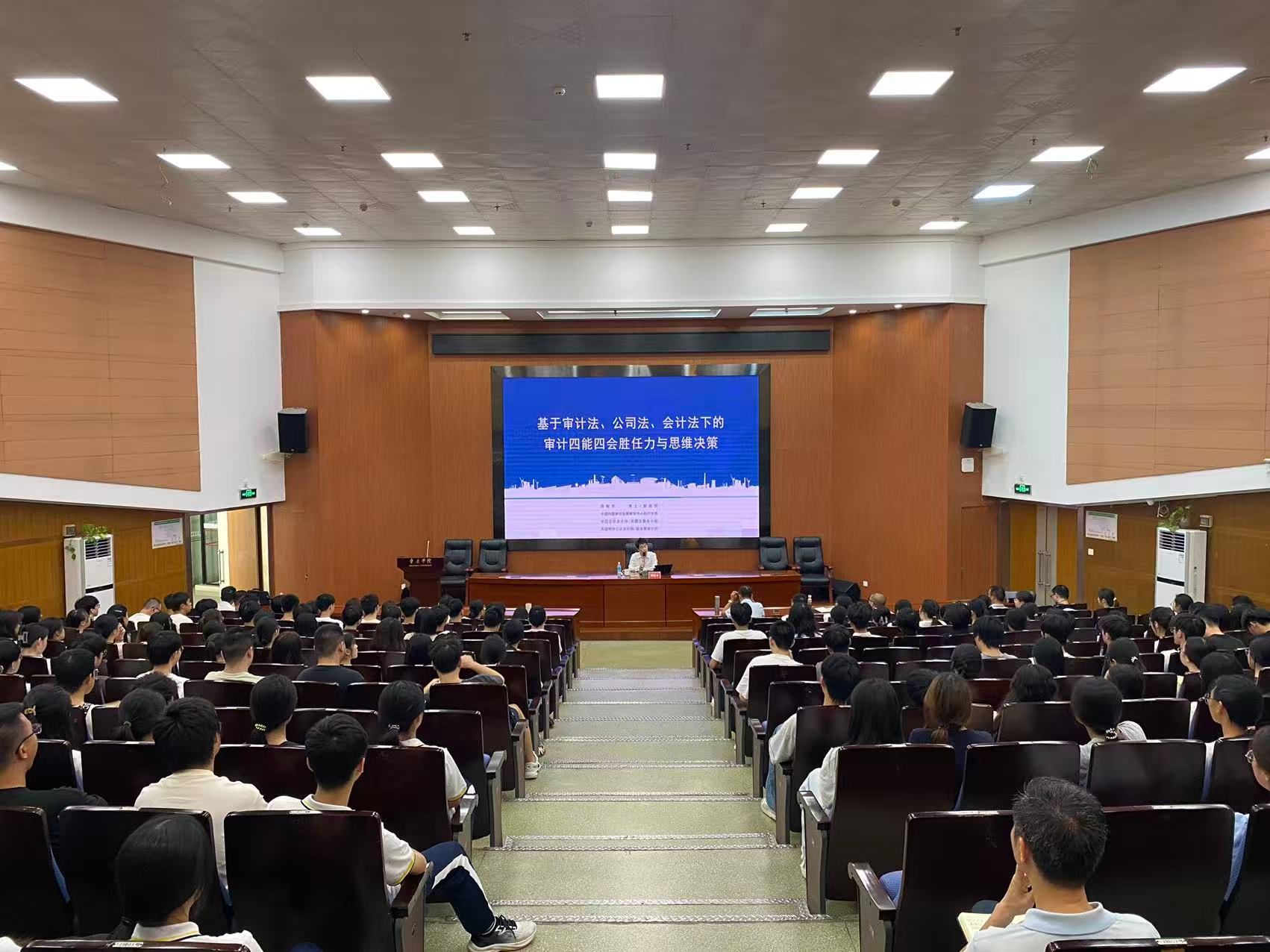 10月15日,永利集团304官网成功举办“砚园经管名师名家论坛”第九讲,特邀南京审计大学中国内部审计发展研究中心执行主任周敏李副教授做“基于审计法、公司法、会计法下的审计四能四会胜任力与思维决策”的专题讲座。公司会计专业全体教师、部分行业导师代表及23级、24级、25级会计学本科生参加了讲座。讲座由经理李华军主持,