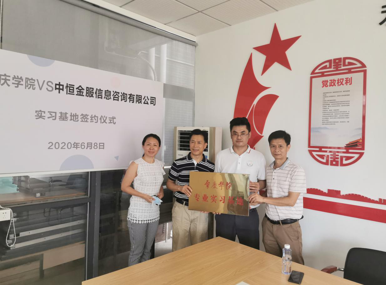 2020年6月8日,经济与管理公司党委书记黎天宇、副经理雷洪、电子商务系主任田苗等出席了与肇庆市中恒金融信息有限公司的实习基地签约授牌仪式。该实训基地的建设对推进永利集团304官网投资学专业设置与产业需求对接、进一步深化产教融合将会起到积极的推动作用。