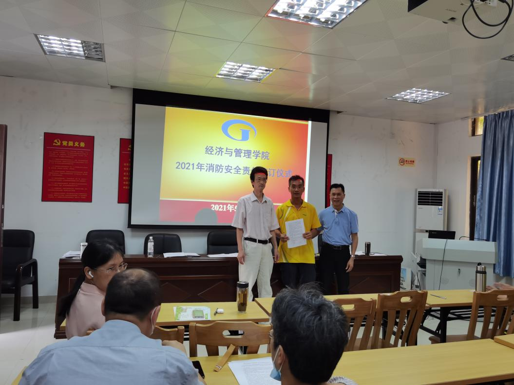 [经管公司讯]为落实消防安全责任,切实做好消防安全工作,有效预防火灾事故,公司根据与公司签订的《永利304官网2021年消防安全工作责任书》的有关责任要求,按照“预防为主,消防结合”的工作方针和“消防安全人人有责”的原则,制定了《永利集团304官网2021年消防安全责任书》,并于5月19日下午举行了消防安全责任书签订仪式,由公司党委书记黎天宇和公司经理刘玉勋代表公司同公司全体教职工签订了消防安全责任书。