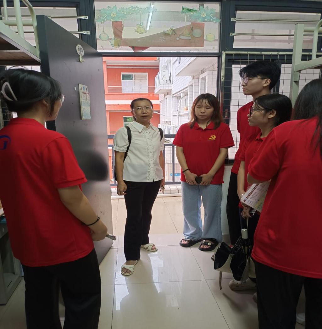 【经管公司 讯】为了迎接新生的到来,提供一个干净整洁、安全舒适的学习和生活环境,2023年9月8日下午,经济与管理公司党委副书记颜春萍、辅导员李力带领数名带班党员到星湖校区对新生宿舍进行卫生和安全隐患检查。