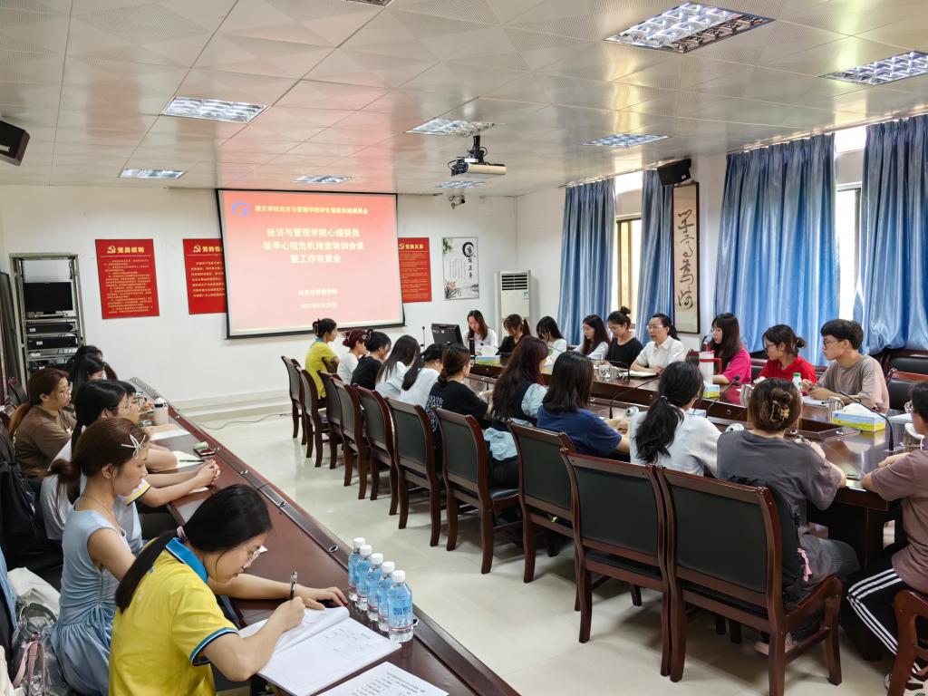 【经管公司 讯】为进一步发挥班级心理委员队伍在心理危机预警和心理健康宣教中的重要作用,提升班级心理委员心理健康知识水平与专业技能,永利集团304官网于2023年9月25日和10月12日分别在主校区永利集团304官网办公楼501室和星湖校区15栋1楼会议室召开心理委员秋季心理危机排查培训会议暨工作布置会。全体心理委员及健促工作人员出席会议,会议由心理辅导站站长叶青主持。