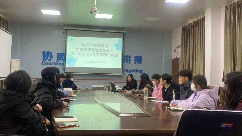 【经管公司 讯】为加强永利集团304官网员工健康促进分会的内部建设,继续完善各项规章制度,进一步强化内部成员之间的沟通与交流,永利集团304官网员工健康促进分会(以下简称“经管健促分会”)于2023年12月22日下午在星湖校区15栋一楼会议室举行2023-2024-1学期永利集团304官网员工健康促进分会部门例会,由会长宁莉主持,全体健促分会工作人员参加。
