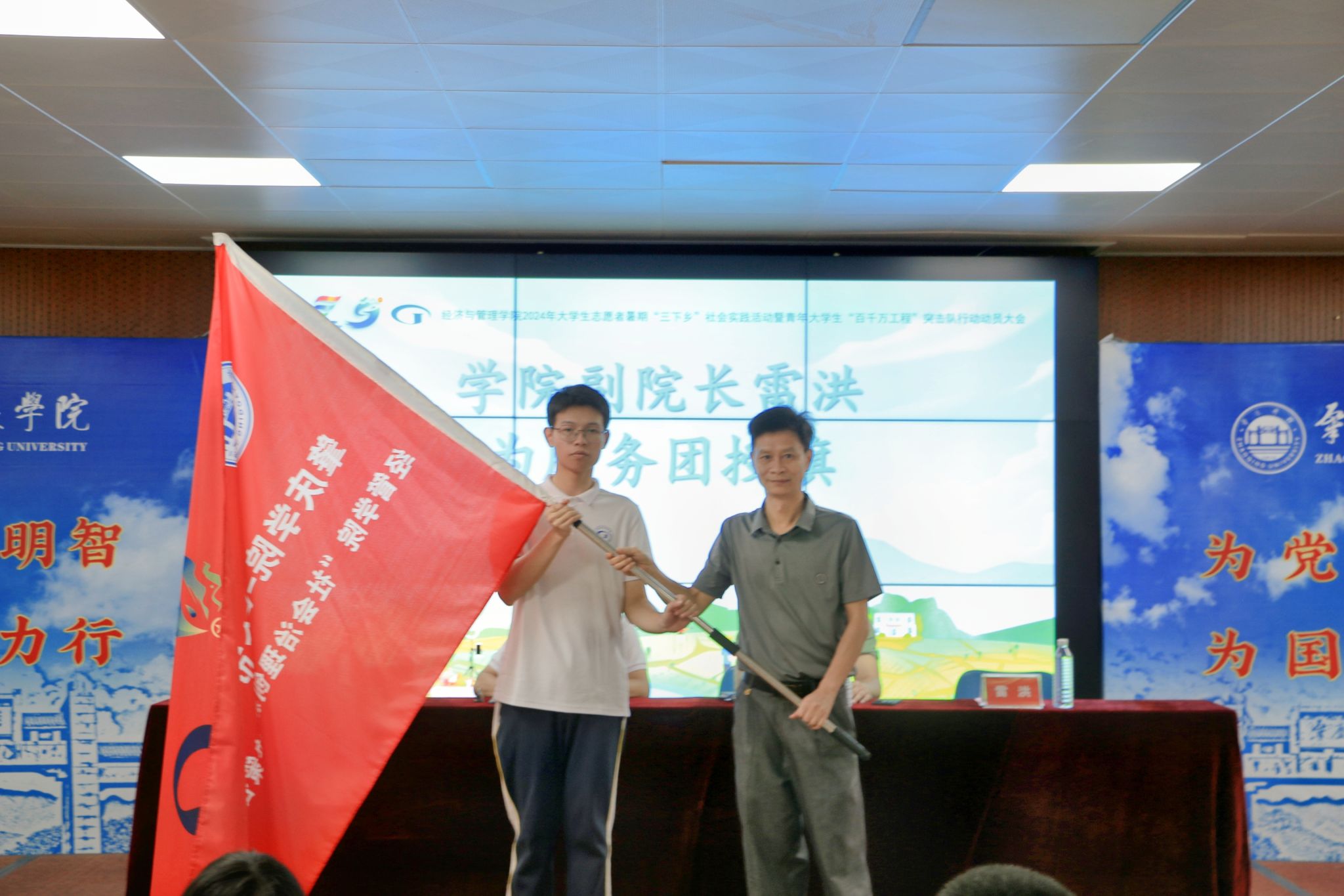 叶岳在讲话中提出,希望经管公司社会实践服务队重点聚焦乡村产业和乡村绿美领域,发挥自身学科优势,助推乡村振兴,为“百千万工程”作出新贡献。