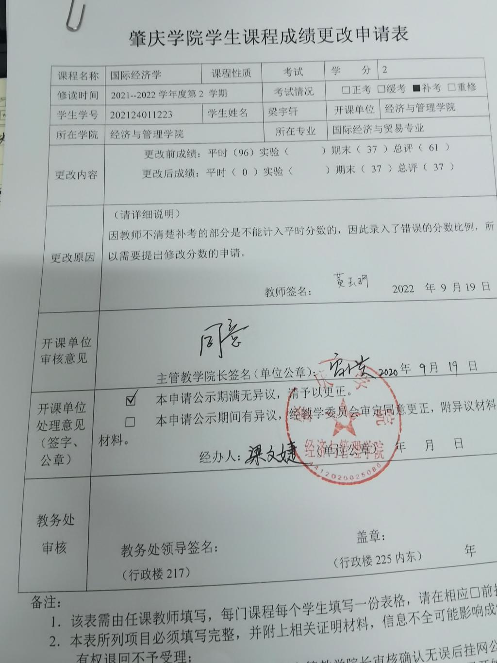 永利304官网员工课程成绩更改申请表公示(永利集团304官网梁宇轩)