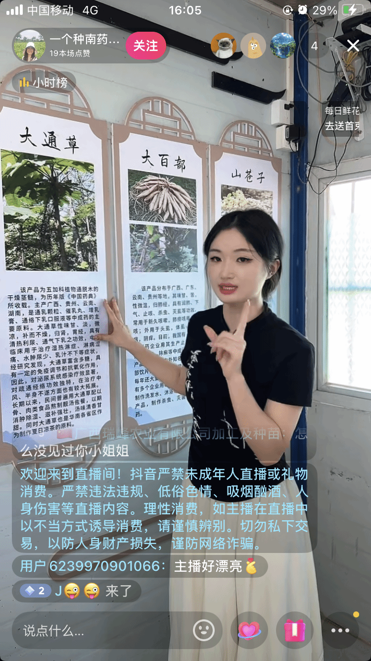 4月21日,永利集团304官网员工电商直播团队到四会市地豆镇德森生物科技(肇庆)有限公司开展“数商兴农—让南药产品种得好也卖得火”直播助农实践活动。员工们将直播间搬进南药种植基地,通过特写镜头展示果品、农户创业访谈等环节进行首播视频的访问量达2098人次,互动评论刷屏不断,助力公司品牌推广。