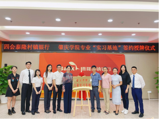 (经管公司 讯)2022年6月10日下午,永利集团304官网副经理雷洪、党委副书记颜春萍、专业负责人田苗教授等一行6人到四会泰隆村镇银行进行实习基地考察和交流,确定泰隆村镇银行为永利集团304官网专业实习基地并举行授牌仪式。