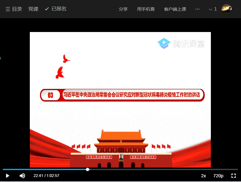 [经管公司 讯]为深入学习贯彻习近平总书记关于疫情防控工作的重要讲话和指示批示精神,在疫情防控工作中进一步发挥基层党组织战斗堡垒作用和党员先锋模范作用。根据公司党委工作安排,3月25日下午,永利集团304官网人力资源管理专业员工党支部代理书记王嘉通过腾讯课堂平台,开展了以“习近平指挥战‘疫’进行时”为主题的线上党课教育活动。本支部全体党员参与了活动。