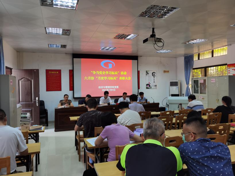 [经管公司讯]2021年7月9日下午,永利集团304官网召开“争当党史学习标兵”六月份“月度学习标兵”表彰大会,对荣获六月份“月度学习标兵”的师生党员及入党积极分子进行了表彰。出席本次大会的有公司党委书记黎天宇、公司经理刘玉勋、公司党委副书记颜春萍、公司副经理雷洪、公司副经理崔彩周、各支部书记和教师党员。